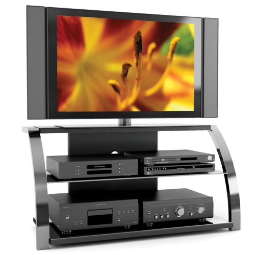 Part of the extensive Milan Collection the ML-1444 embraces the Gun Metal Finish uprights to accommodate most high definition televisions up to 52”. It demonstrates style and design with the open concept of breathable space. The tempered glass shelves hold various shapes and sizes of components and gives your valuable electronics some much needed air circulation. Bring home this contemporary furniture by Sonax, proudly built in North America.